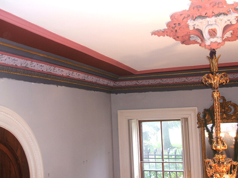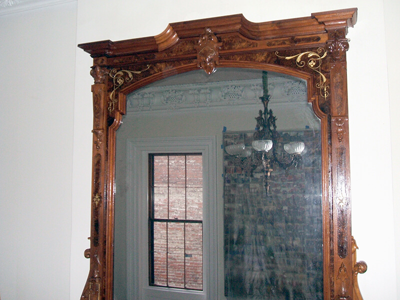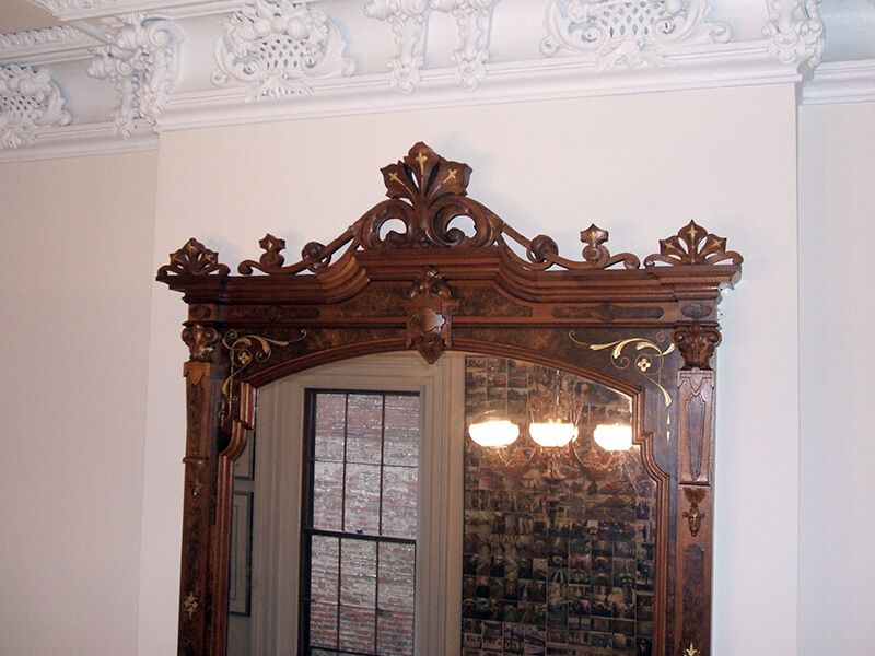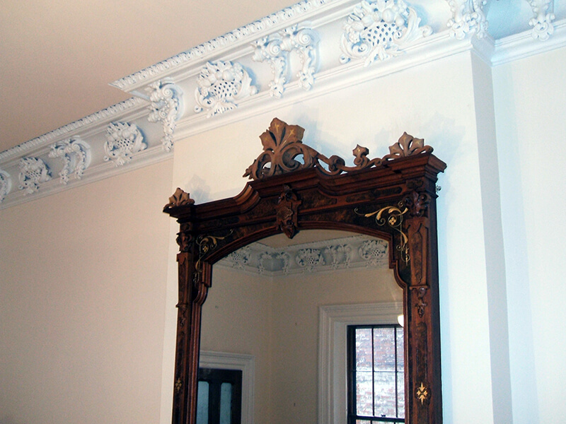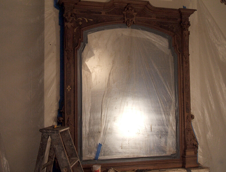 A few shots from a painting job in the South End as well as the stripping and refinishing of an antique mirror. Fruit basket crown molding was sprayed.