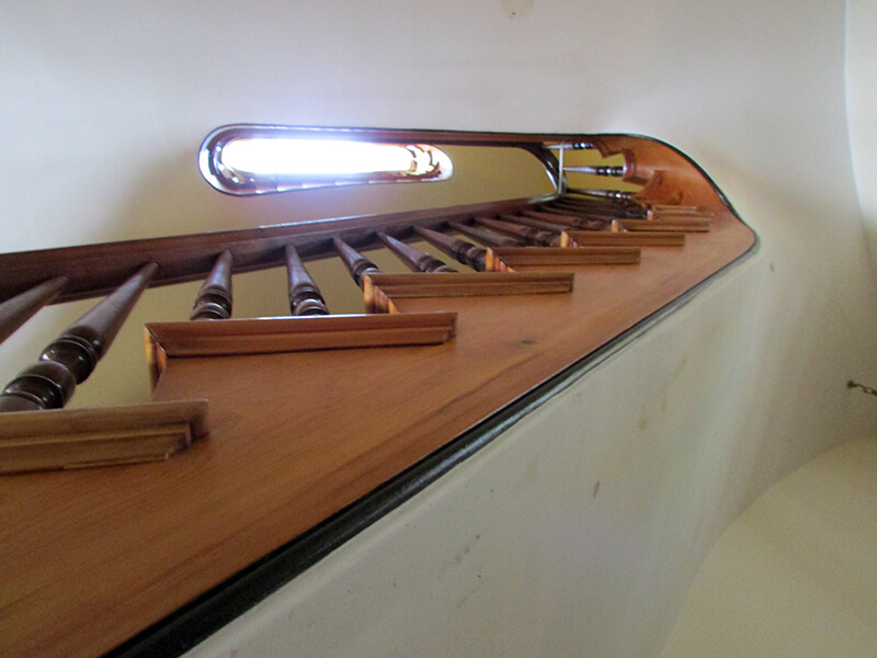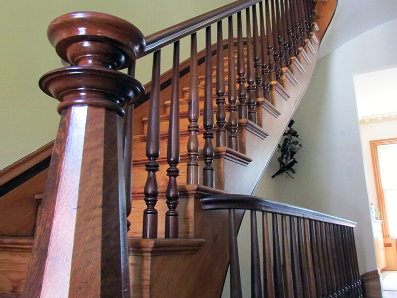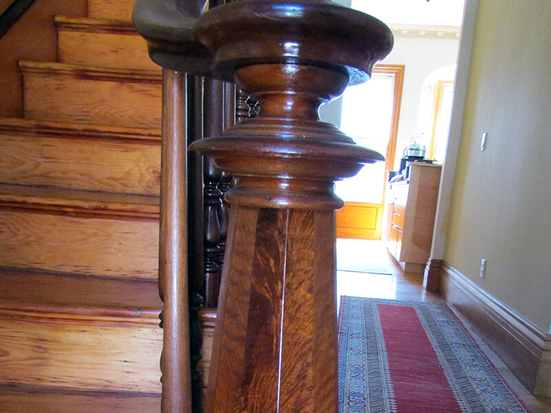 One of many staircases where original paint was stripped off before stain and varnish were applied. Stairway walls were painted as well.